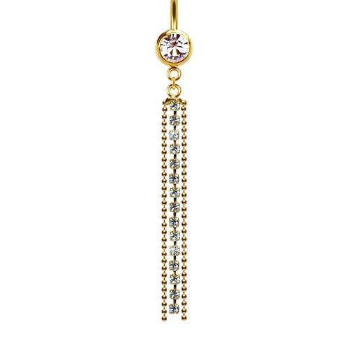 316L Surgical Steel Gold PVD Elegant Triple CZ Tassel Dangle Belly Ring