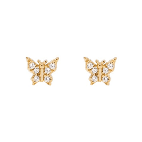 Pair of 925 Sterling Silver Gold PVD Small Butterfly Gem Minimal Earrings