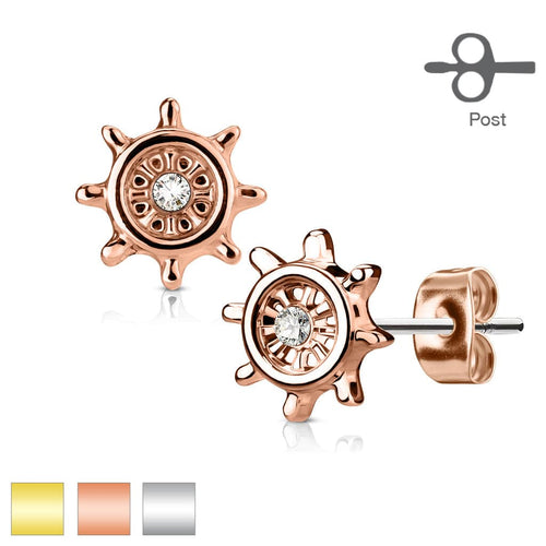 Pair of Surgical Steel Anchor Wheel Earring Studs