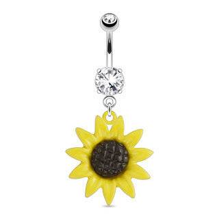 Surgical Steel Belly Button Navel Ring Bar with Dangling Sunflower