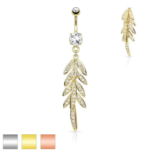 Surgical Steel Pave Leaf Dangling Belly Button Ring
