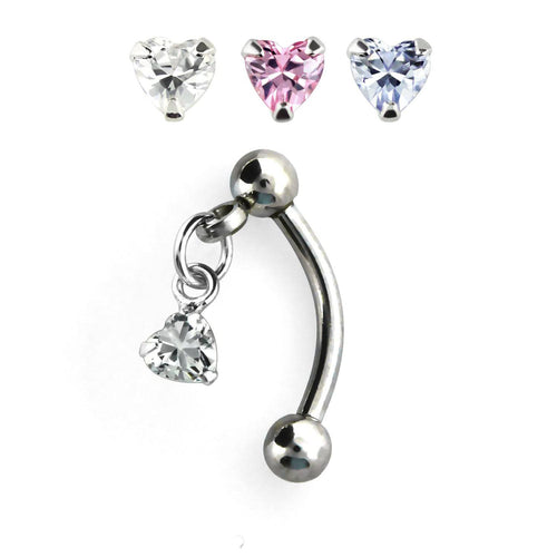 316L Surgical Steel Devil Horns White CZ Heart Belly Ring