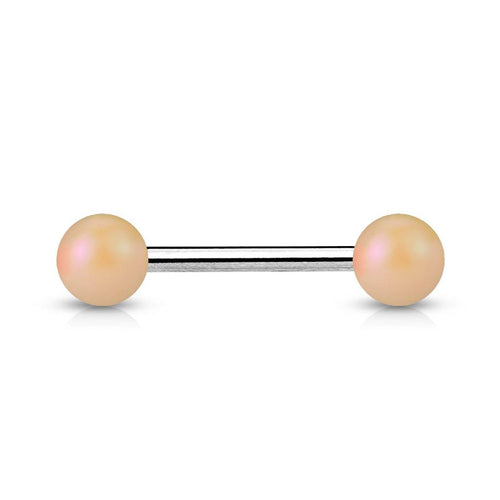 316L Surgical Steel Straight Barbell with Matte Peach Acrylic Balls