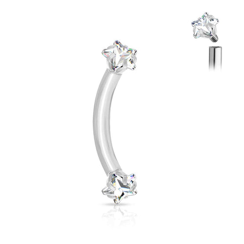 316L Surgical Steel Internally Threaded Double White CZ Star Curved Barbell