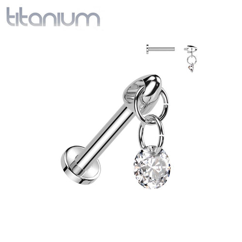 Implant Grade Titanium Internally Threaded White CZ Dangle Flat Back Labret