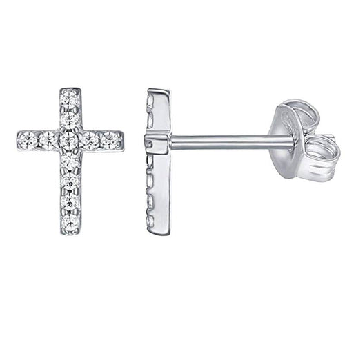 Pair Of 925 Sterling Silver Medium White CZ Cross Minimal Stud Earrings