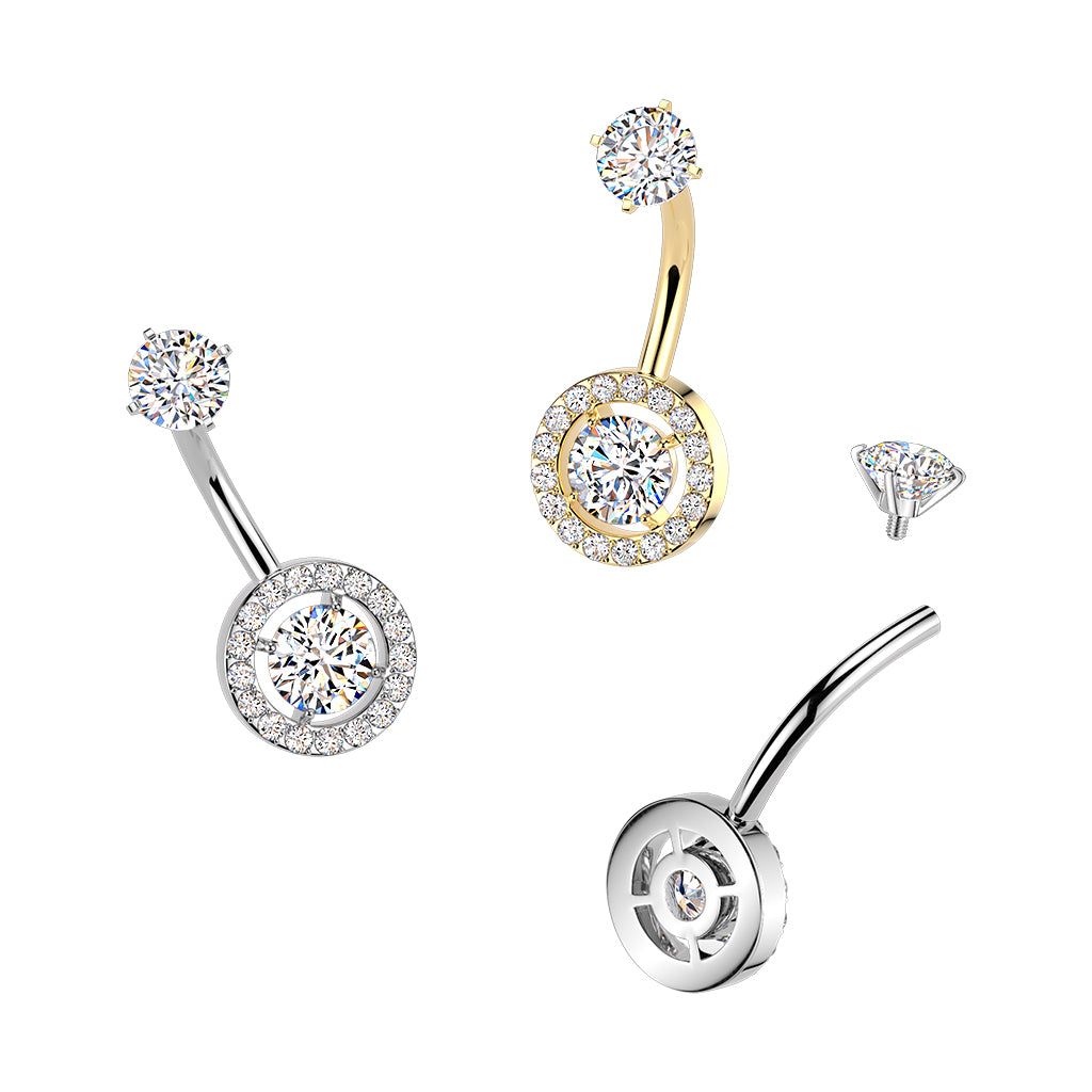 316L Surgical Steel Gold PVD White CZ Circle Pave Gem Internally Threaded Belly Ring