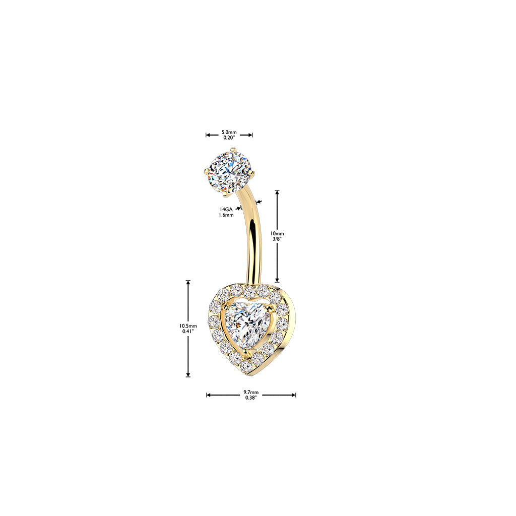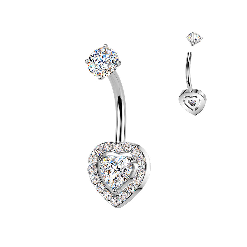 316L Surgical Steel Heart Shape Gem White CZ Internally Threaded Belly Ring