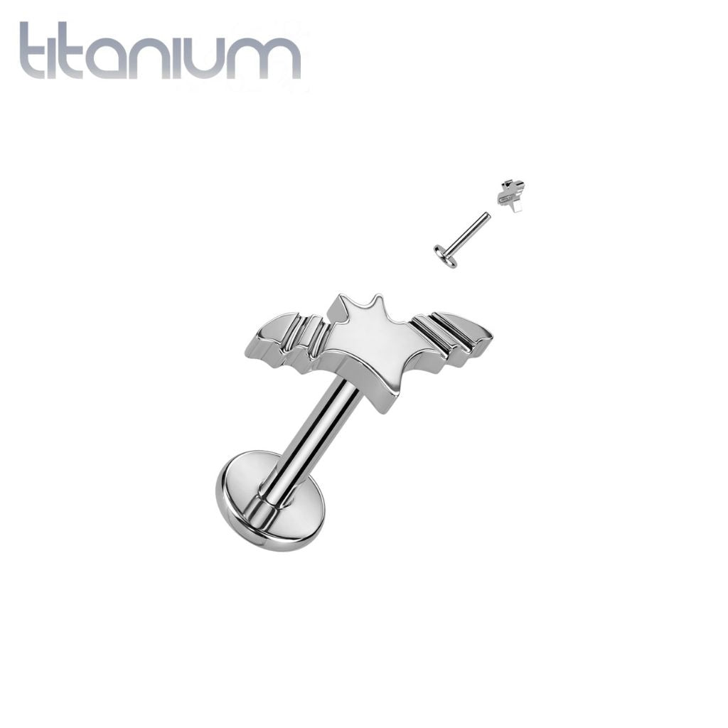 This flat back Implant Grade Titanium Internally Threaded Ridged Bat Flat Back Labret features an internally threaded bar top with a flat backing. Perfect for spooky season or every day wear!