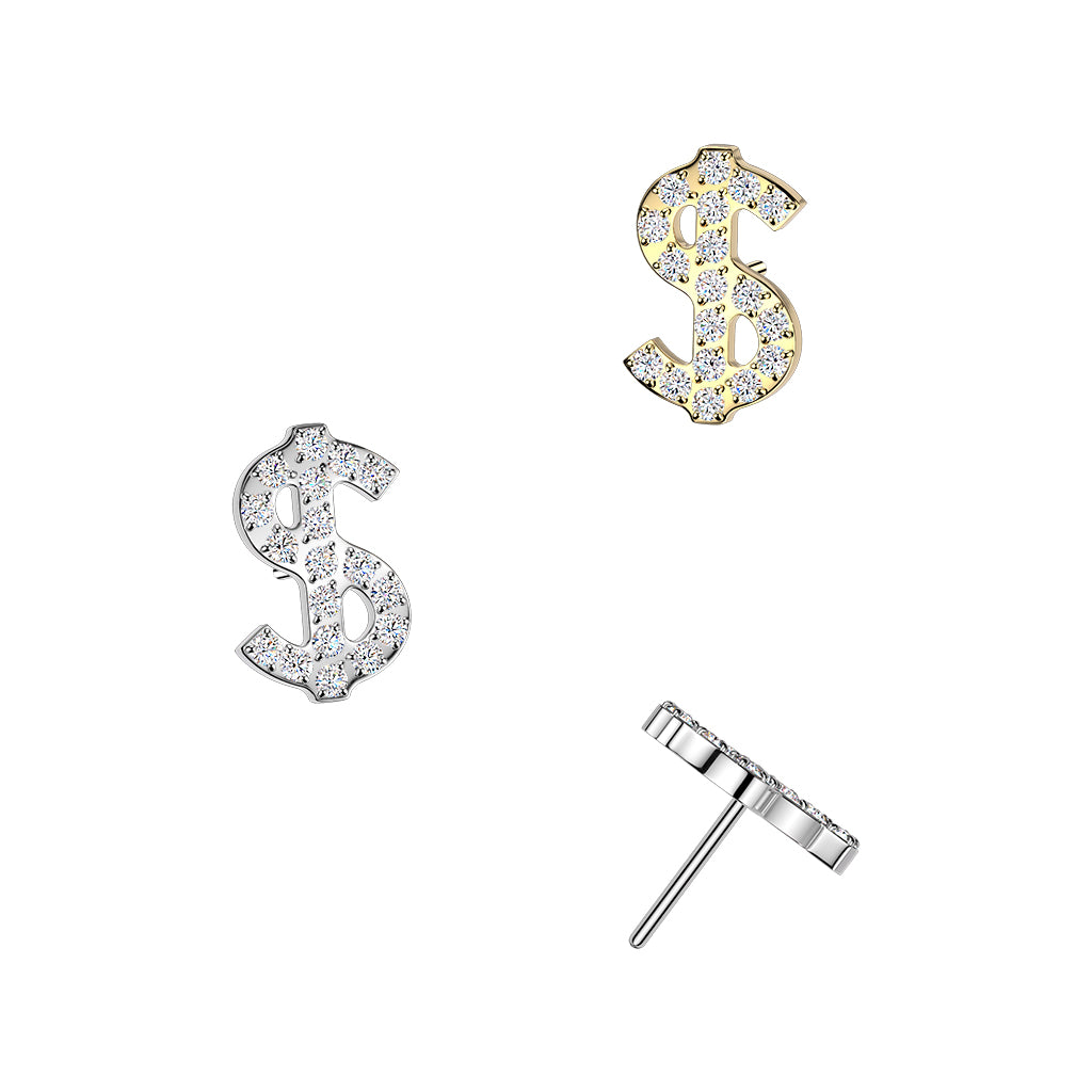 Implant Grade Titanium White CZ Money Dollar Sign Threadless Labret With Flat Back